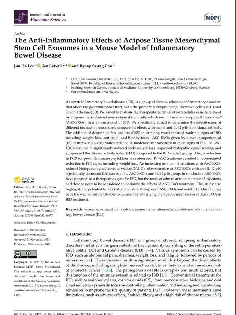 The Anti-inflammatory Effects of Adipose Exoso…el of Inflammatory Bowel Disease_IJMS_2023.pdf의 사본 發佈留言 / 魔泌EV / 作者: Joe The Anti-inflammatory Effects of Adipose Exoso…el of Inflammatory Bowel Disease_IJMS_2023.pdf의 사본 Read More »